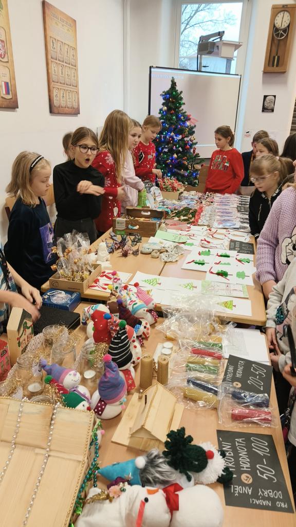 Minulý týden se konal tradiční vánoční jarmark, který byl velkým úspěchem. Žáci, rodiče i učitelé si mohli zakoupit ručně vyrobené ozdoby, cukroví a drobné dárky, na kterých děti pilně pracovaly. Díky této akci se podařilo vybrat téměř 30 000 korun, které poputují na pomoc prostřednictvím organizace Dobrý anděl.